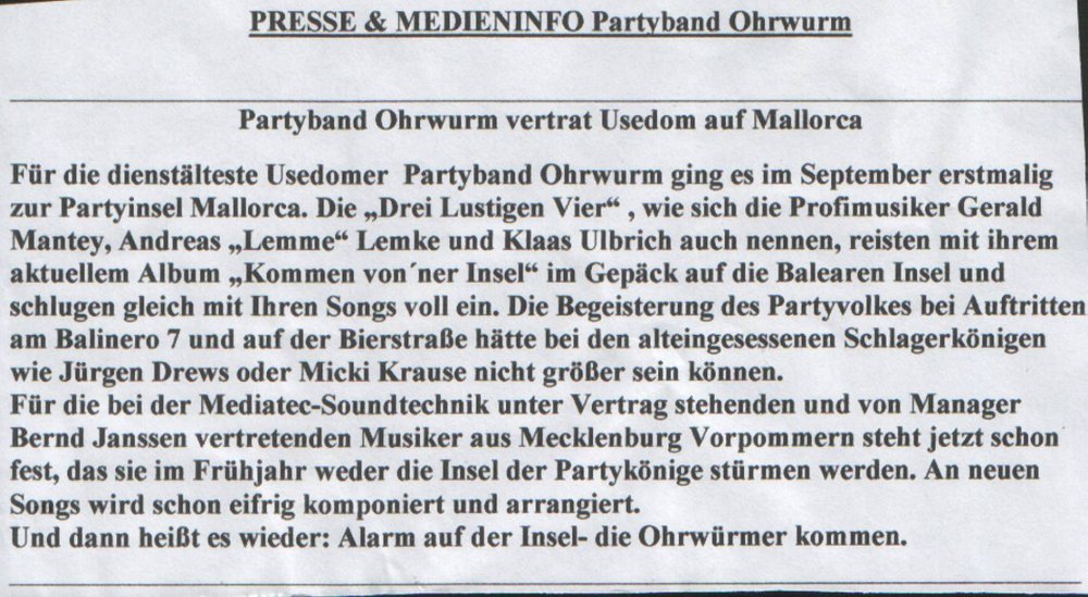 Meditec-2OZ-Ohrwurm-08Feb2012HKOhrwurm startet auf Mallorca durchInsel ZeitungOZ-20jahr-auswertung Mallorca Regional